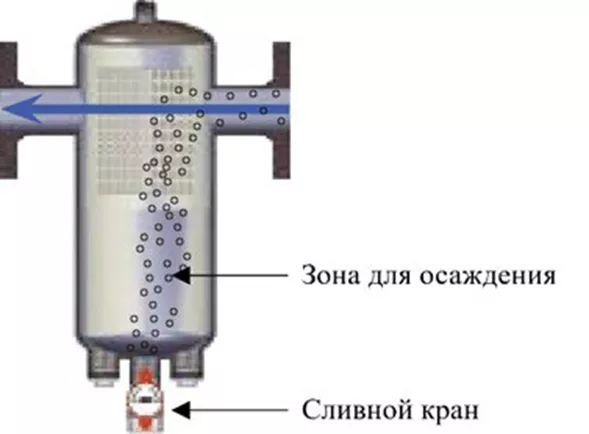 Чтобы предотвратить вышеперечисленные проблемы, вместо обычных сетчатых фильтров в систему отопления также могут быть установлены фильтры-отстойники (дешламаторы). В их корпусе предусмотрена зона для осаждения улавливаемых частиц грязи и сливной кран для их удаления.
